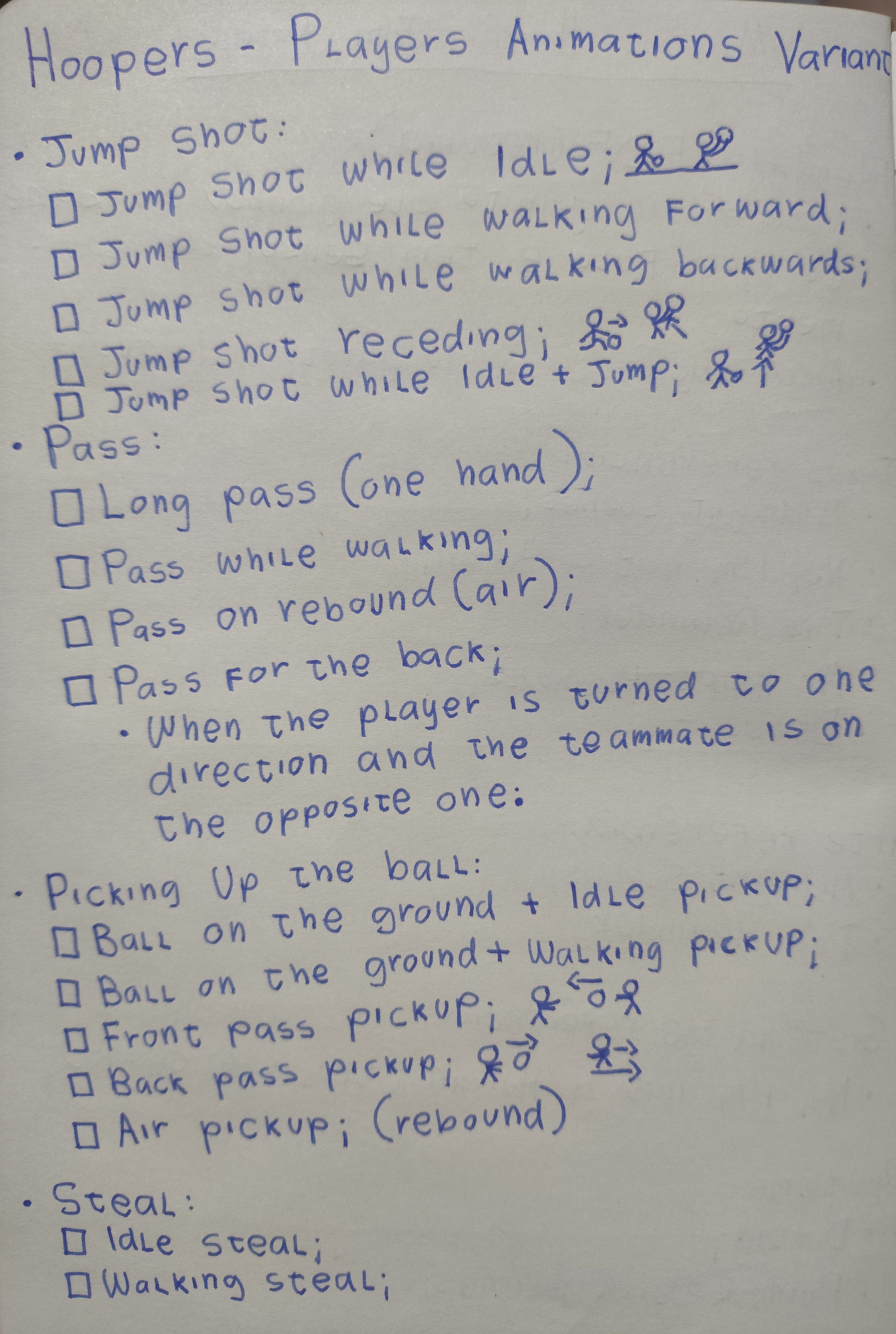 Vamos selecionar uma mecânica do meu jogo, o passe por exemplo. Eu estou fazendo animações variadas para realizar a mesma mecânica, mas de diferentes jeitos, fiz até uma lista: