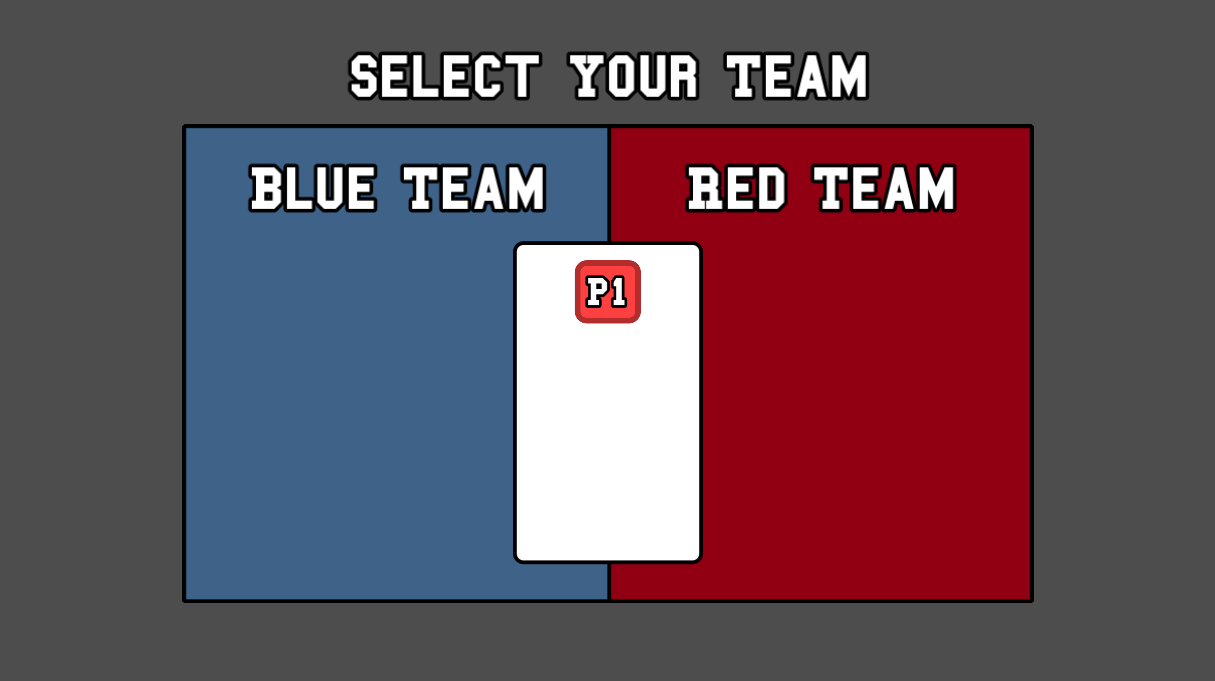 E agora, e apenas agora, estou fazendo a interligação das duas telas, o jogador clica em “Jogar” e vai para a tela de seleção de lado, onde outros jogadores podem entrar e escolher seus times. Depois disso, serão levados a tela de seleção de jogadores, onde escolhem os personagens em si nos quais vão controlar durante a partida para depois irem para a partida.